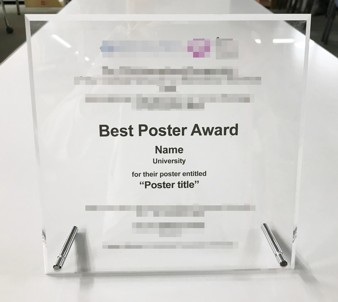 The winner of the Best Poster Award will receive an award plaque like the one shown in the photo.